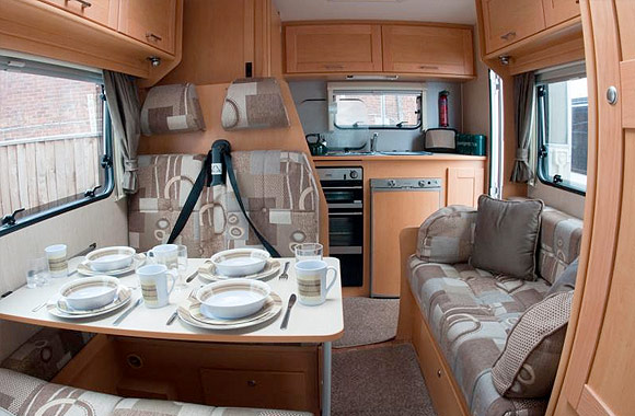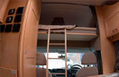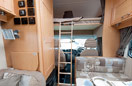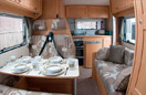 The overhead lockers give you lots of room to store your clothes. The warm colour fabrics and comfortable furnishings make the Elddis Autoquest 100 a lovely place to be.