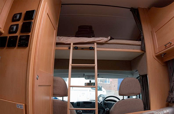 The Elddis Autoquest 100 is a compact 4 berth Motorhome to hire which doesn't compromise on space. The overcab bed and front dinette provide 2 seperate double beds at night, whilst during the day the front dinette and side sofa give you all the room you need to stretch out and relax.