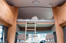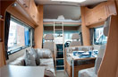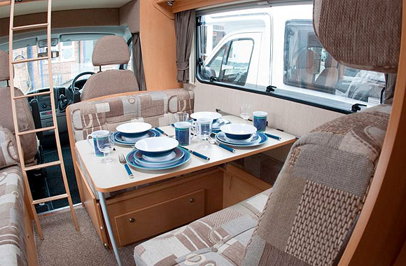 At night the front dinette makes into a double bed and another double is provided in the overcab space. This simple but effective layout makes the Elddis Autoquest 130 the ideal Motorhome for hire.