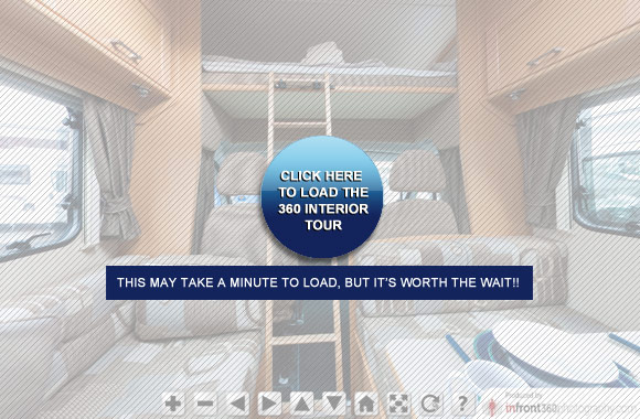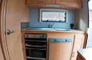 This has a full oven, grill and gas hob we even supply a toaster. The fridge incorporates a freezer box which ensures that you can be self sufficient. You will also find the toilet and shower to the rear of the Motorhome.