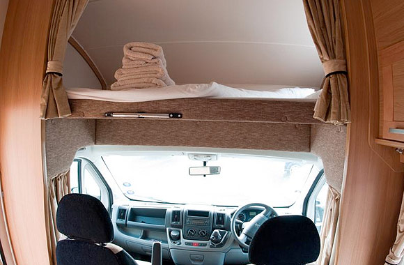 The Elddis Autoquest 145 is different to the majority of Motorhomes for hire. The reason being it has 4 seatbelts and a rear u-shaped lounge. The benefit of this is that at night you can leave the ladder in place to the over cab bed making it easy to get up and down.