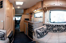 The rear u-shaped lounge has comfortable seating for 4. The middle of the motorhome has a full oven, grill and gas hob we even supply a toaster. You will also find the toilet and shower to the rear of the Motorhome.